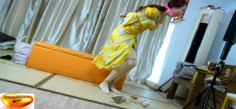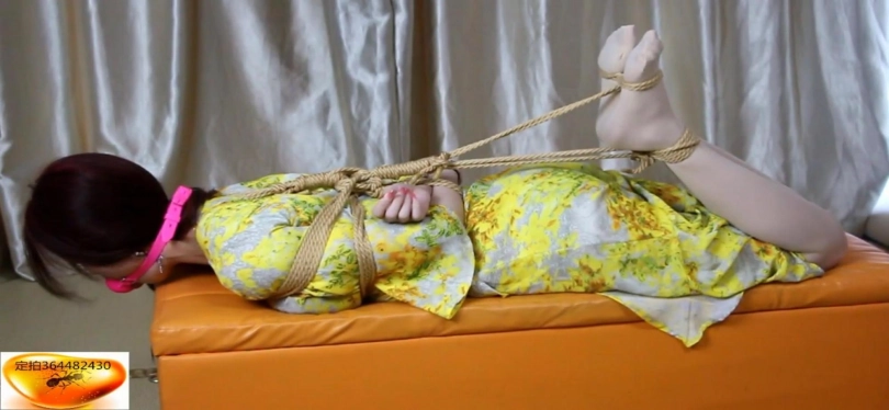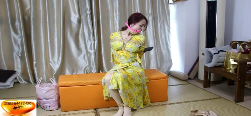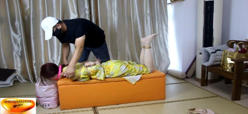 楠楠是一位丝袜公司的主播,拿完公司需要带货讲解的快递,但是回到家中发现多了不是丝袜的一个快递,美女主播因为比较喜欢贪小便宜,没打算还回去,便开始了直播,脱下鞋后讲解了起来,讲解完黑丝后便脱下黑丝换上光腿神器后又开始讲解光腿神器,讲解完后便拆开了多于的一个快递,打开一看居然是一个口球,不懂的主播,便问起来直播间观众,得到观众答应后,然后自己拿出手机上网查询这才明白,原来是个粉色的大号口球,还挺好看,就在主播很疑惑的跟观众聊的时候,突然听见敲门声,询问得到的答复是快递,可是自己没有买快递呀,于是藏好口球,穿上鞋子就去开门了。一开门就被人用毛巾捂住了嘴,拖入室内后,并要挟主播不要出声,威胁主播脱下鞋子,然后威胁把旁边穿过的黑丝拿过来,拿过后递给坏人,然后坏人拿出绳子,看见坏人拿出子绳便喊救命,坏人见状赶快捂住主播嘴,然后强制将黑丝塞到主播嘴里,模特上身日式捆绑,脚裸和脚膝也被紧紧捆绑上,最后被胶带封住,被要挟钱财在忙哪,被逼无奈只能挣吟示意同意,坏人便撕开胶布,拿出丝袜后,主播说出钱财位置后,祈求坏人不要用穿过一天的丝袜堵她的嘴,便告诉坏人,自己藏了一个粉色大号的口球,用它堵住我的嘴,并告知了位置,坏人拿到后,然后将5CM大号口球,塞到主播嘴中,拉的很紧,便去寻找钱财了,疯狂挣扎了无果,见坏人离开了,便努力起身去拿开直播的手机求助,可是嘴被塞上了5CM的大号口球,拉的很紧,口球太大,说不出话,只能打字发消息求救,突然被坏人看见,又被绑上了超紧的驷马,拉的很紧,脚跟贴紧臀部,无法动弹了,只能在原地痛苦挣扎,片尾还有花絮。