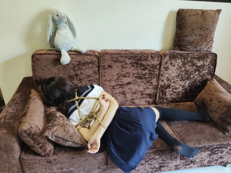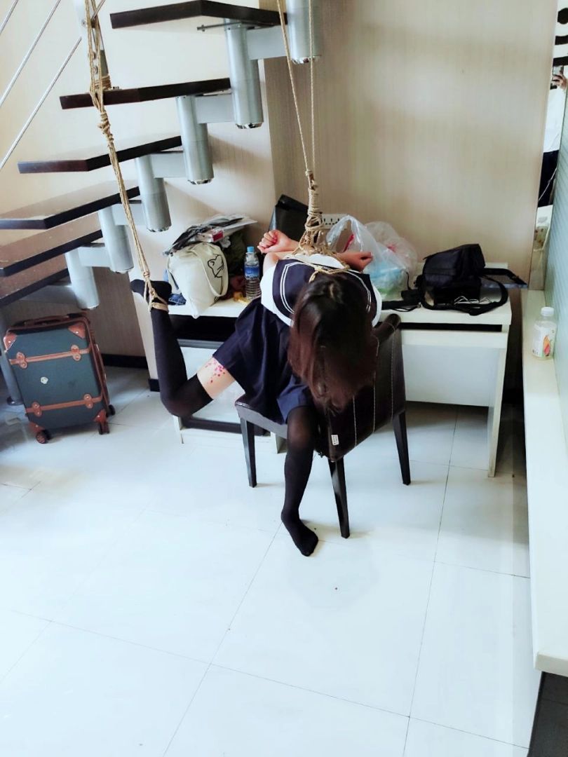 首先,给橘子绑日式后手缚之后让橘子下跪。然后把妹子一只腿折叠起来绑住,绑成折腿缚。另一只脚不绑。一只腿被折叠起来的妹子无法凭借自己的能力站起来,而另一方面另一只自由的腿又给少女一点点希望....这时候牵着橘子酱的项圈,强迫她以这种姿态爬行。。(看官们可以从膝盖磕在地面上的声音来了解爬动有多疼)妹子的腿超漂亮!!摇摇晃晃的爬行的样子特别特别可爱~