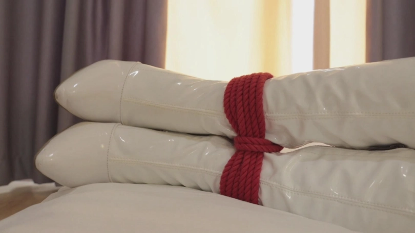【逍遥】《纯K挣扎系列·黑白金紧身包臀皮裙长靴紧缚挣扎》