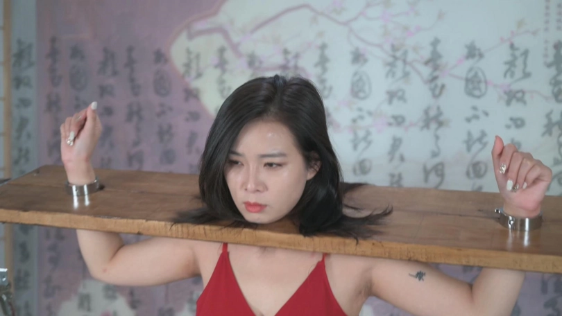 绳模Sprite雪碧初次体验木枷,不由得感叹这是在体验各种酷刑,的确,她的腿部用铁架部件固定,脚上戴镣铐,被这样禁锢的雪碧只能任由宰割了。敏感的雪碧如此状态下面对TK只能无助的呻吟,这撩人的声音此起彼伏。