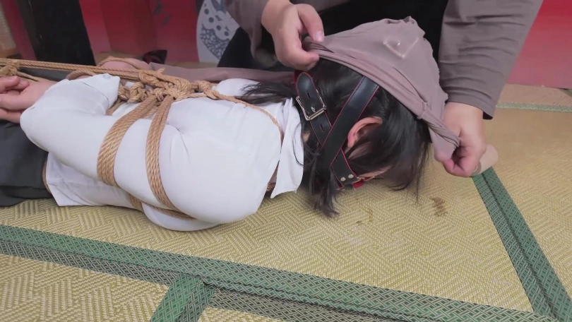 更加绝望的是被带上了马具口塞和丝袜套头