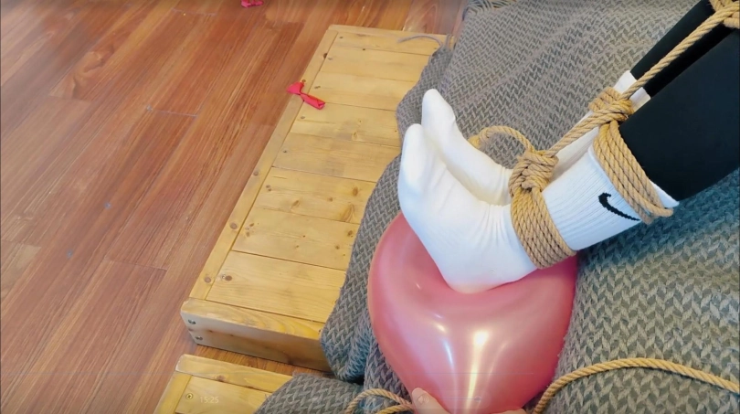 一个“简单“的小游戏,挑战者需要在各种不同类型的束缚方式下,尝试用身体的各个部位去弄破散落在身边的气球。以下为本期挑战的五种束缚方式: