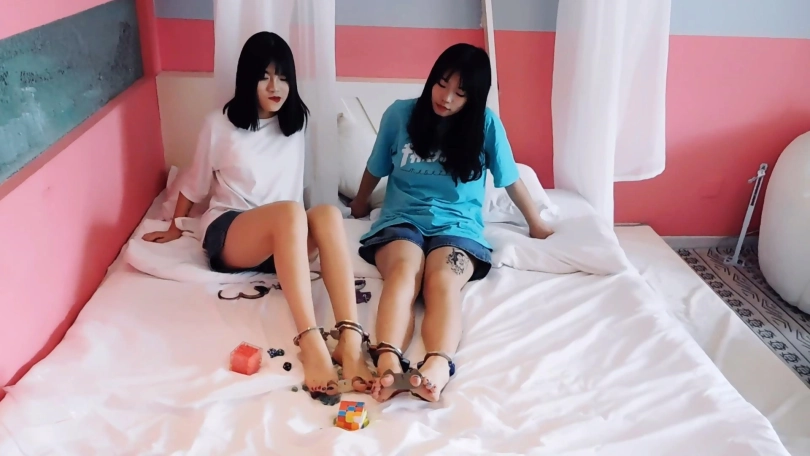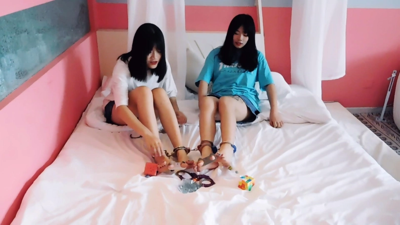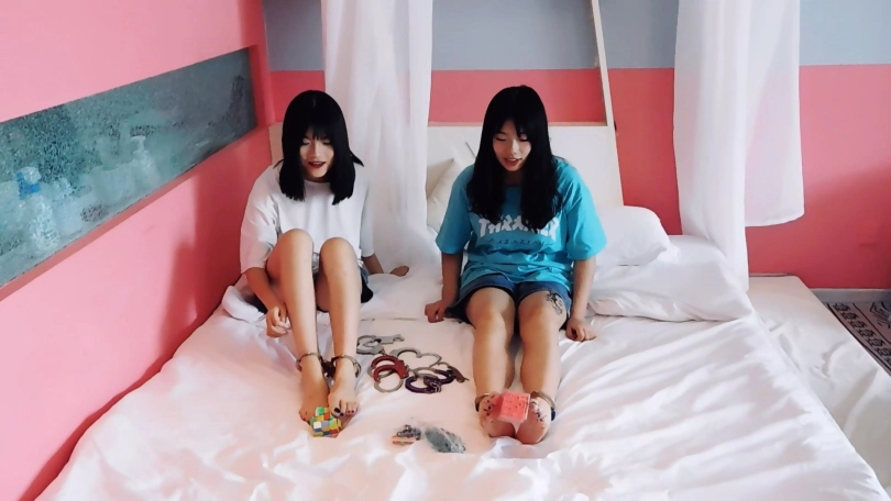 【趾间艺束】少见的双人视频!小王&小晶镣铐玩耍互相铐 结果没了钥匙 被快递员挠脚心TK 最后把二人锁一起!