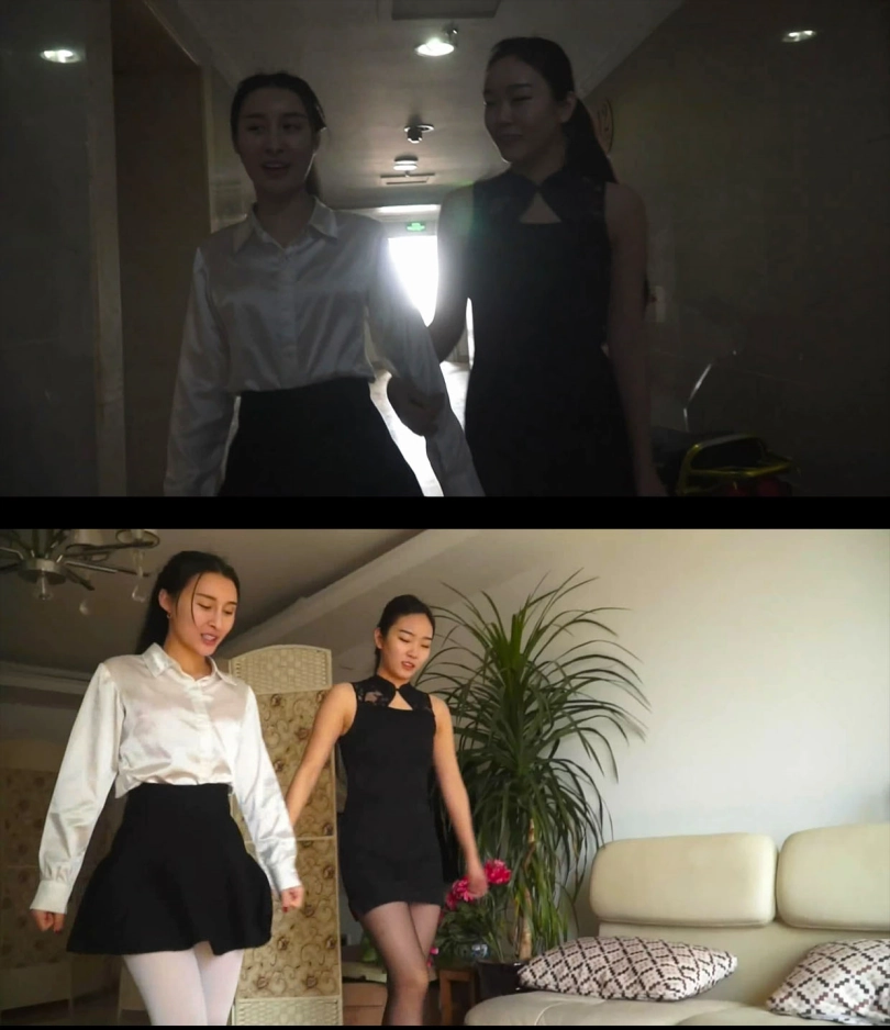 2个美女有说有笑的聊天回家,累坏了的她们喝掉了桌上的水,可怜的她们没一会就晕倒了。