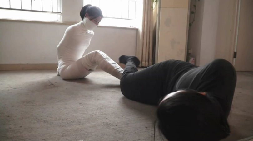 她们痛苦的呻吟扎,玩命的蠕动着想挣脱这几乎绝望的拘束,她们最后能逃出生天吗? 稀有的国内双人木乃伊!挣扎超卖力,模特脸都通红了~