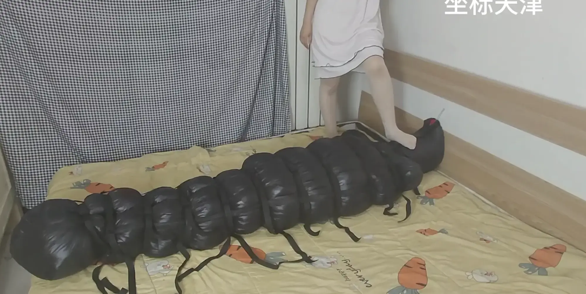 不知道学姐从哪里淘来的羽绒睡袋,把小学弟装进去看看,哇~好舒服呀,软软的,正好可以当抱枕~有没有想当学姐抱枕的宝宝们~