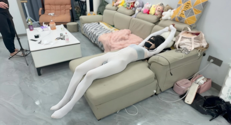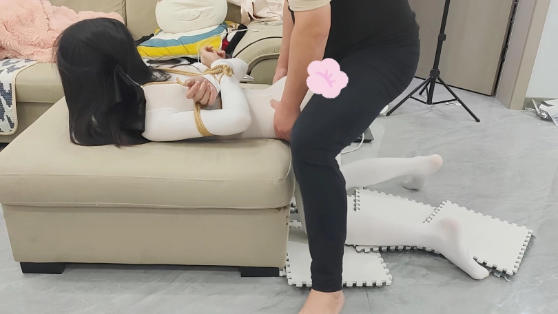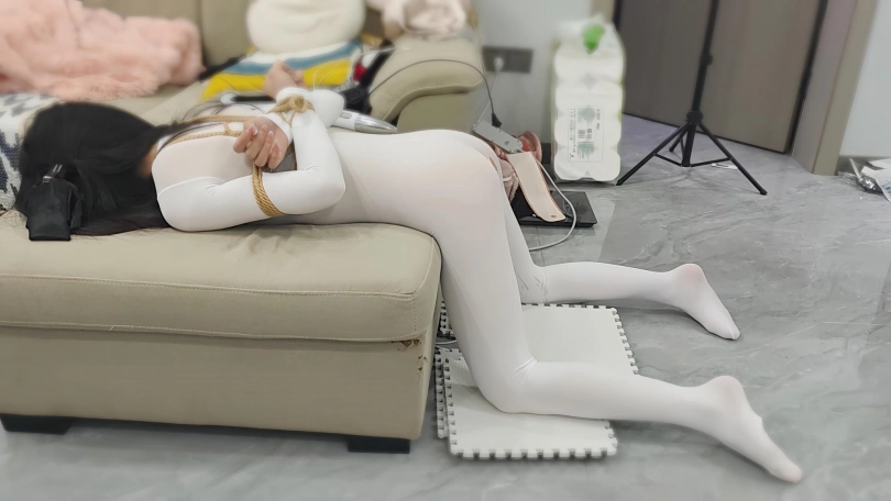 其实穿着这种一体式的全包丝袜,丝袜贴着身体的感觉还是很舒服的,有种说不出的轻微束缚感,,再加上绳子,就别提了!!!!预告片时间有点长,能折磨的道具,该用上的都用上了,很累,累的一丁点也不想动。