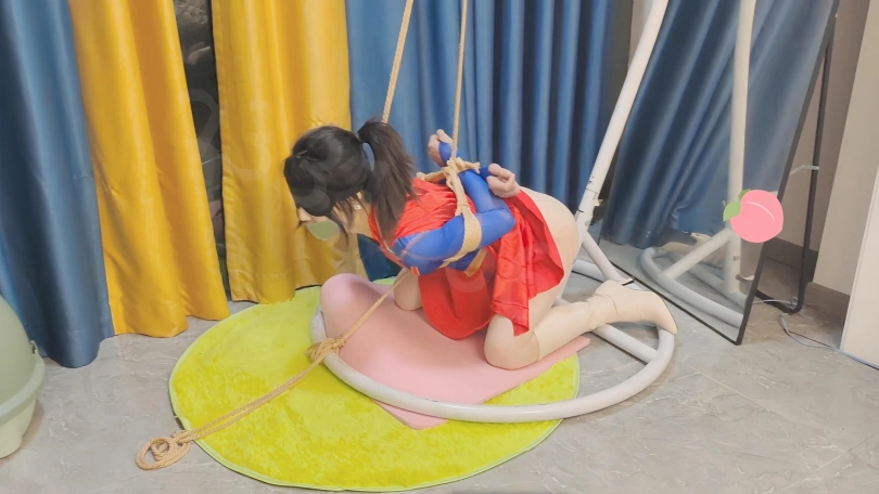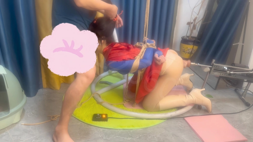 被打扮成女超人之后,本来还有一种拯救地球的自豪感,当被绑起来之后,瞬间就没有那么高调了,,,低人一等的感觉立马就来了,,前后左右挨着被捆绑调教了变,身体被掏空的女超人!!
