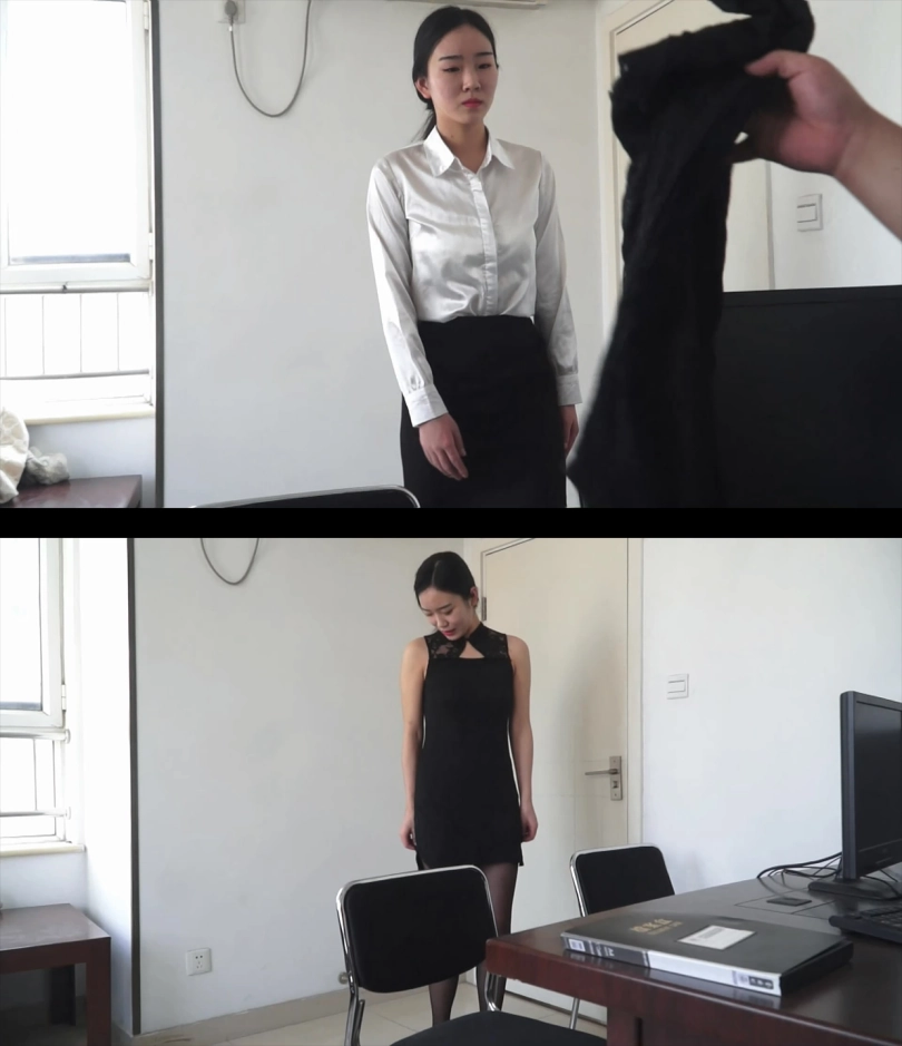 局长给她衣服,切镜头,女警换好了衣服,女警非常害羞,衣服太暴露,裙子太短了,她扭的拉着裙子。和局长求情想换件衣服。