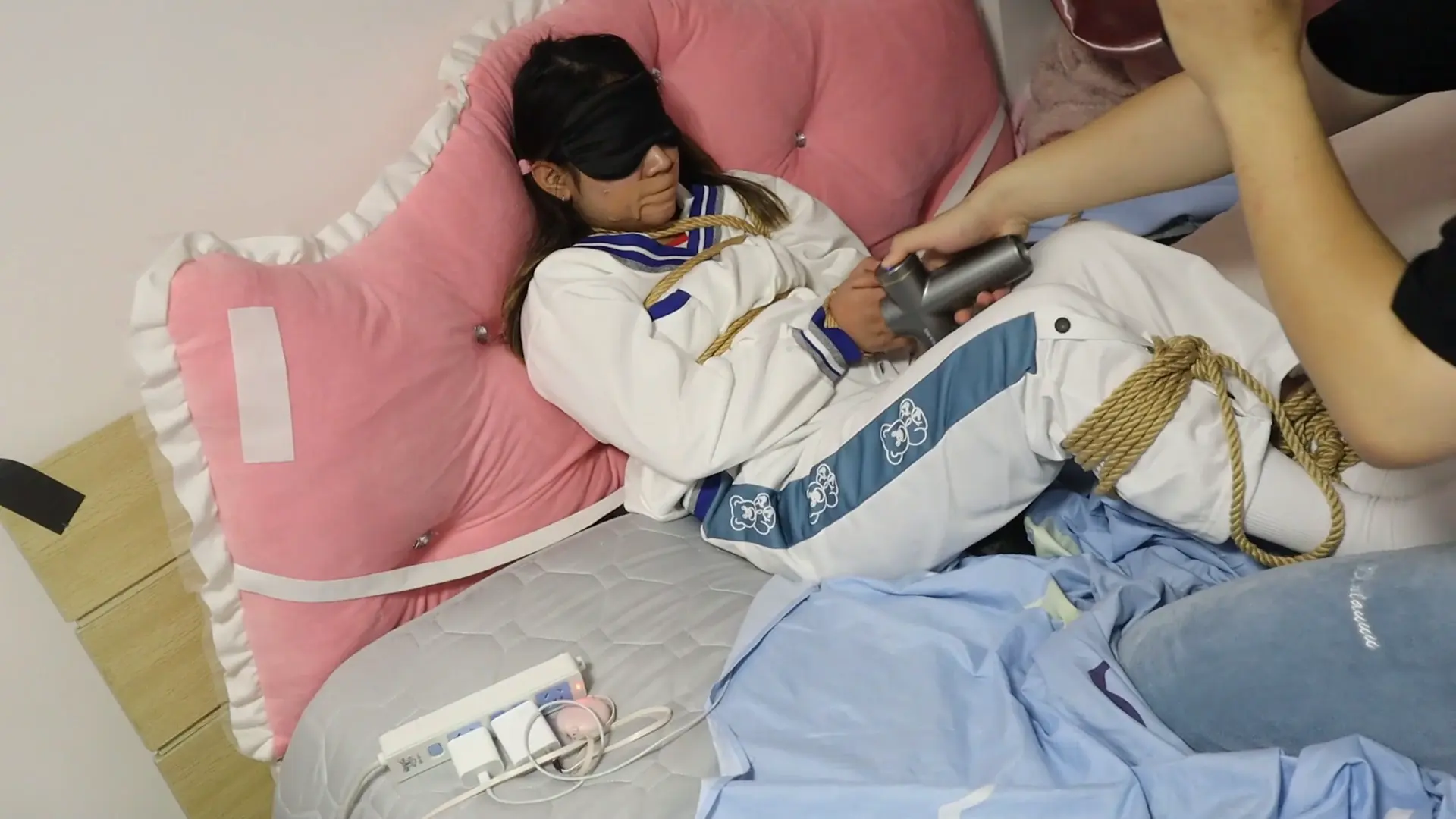 【荷约少女】vivi向主人示好最好的办法 M开腿缚的甜美运动女孩VV拼命吮吸主人的手指向主人示好,筋膜枪不停的刚震就开始尖叫,一边被电的吱哇乱叫,一边拼命挣扎 一边被玩一边被呜咽,呜呜呜的惨叫被胶带封住嘴,把手指放到少女的嘴里用口