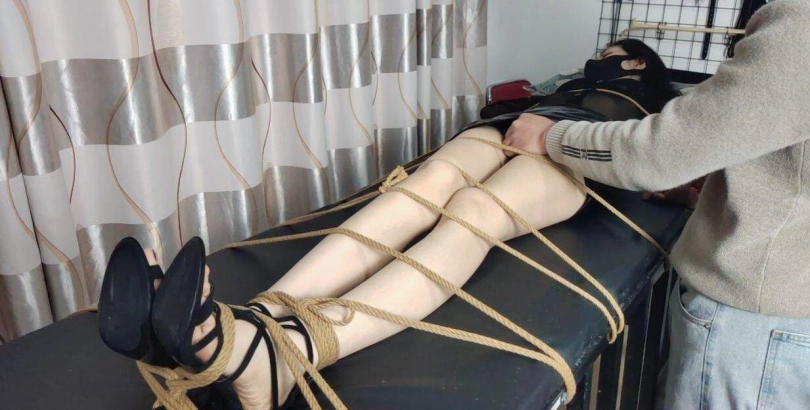 性感长腿被紧紧的绑在牢笼的上方,胸部被散鞭狠狠的抽打,[X_X]还被[X_X]玩弄着。