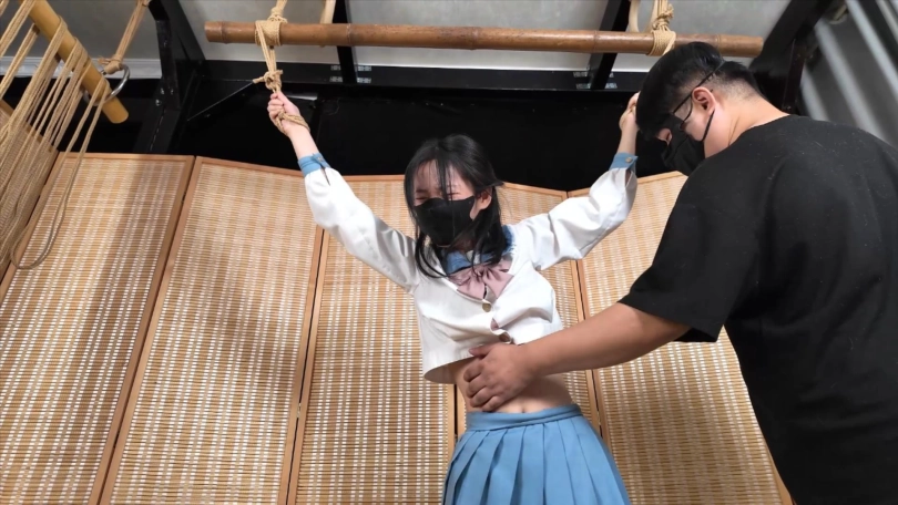 【象人】嗷嗷-jk黑丝,单脚吊缚+M开腿椅子缚。