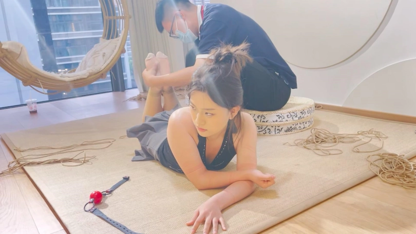 一个话痨兼职妹子,身材柔韧性还挺不错,性格比较大方,带上口球了还想说话,搞的口水流了一地,绑之前还有点小看直臂驷马,绑完之后就老实了。