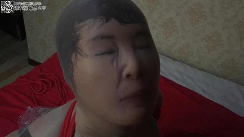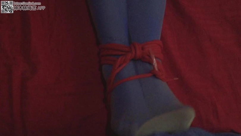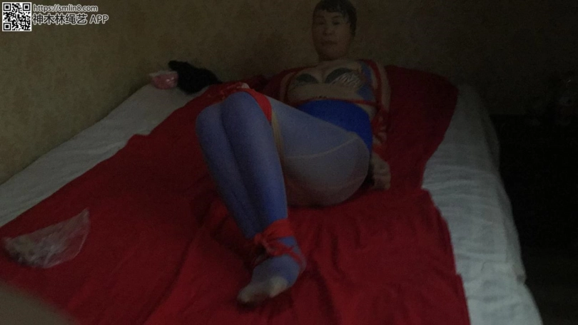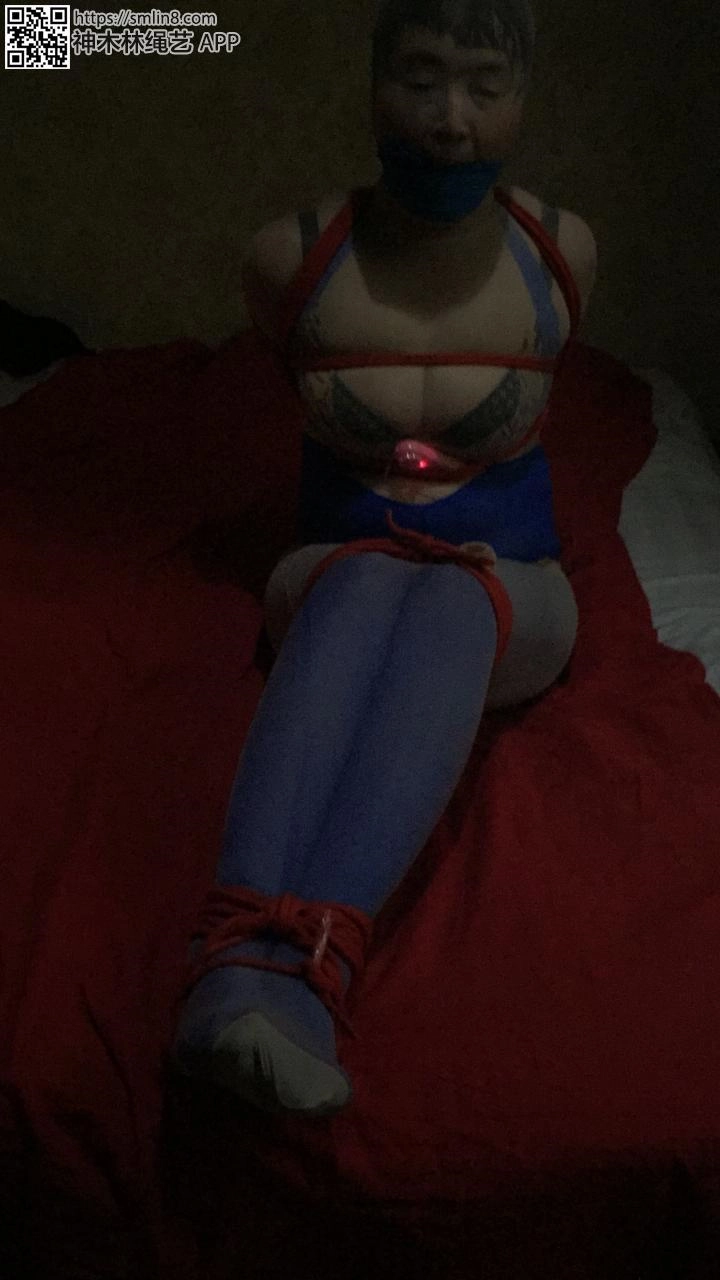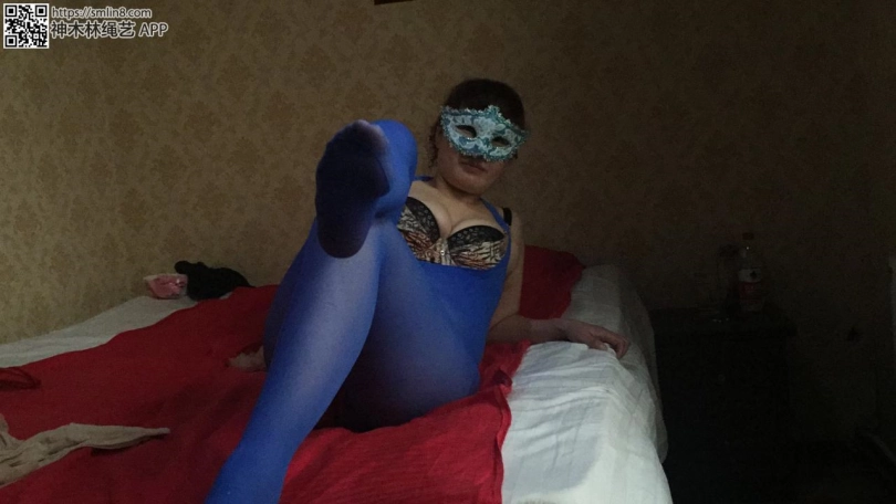 【JS】少妇系列-蓝色连身裤袜 肉丝全包 红绳捆绑 丝袜塞嘴
