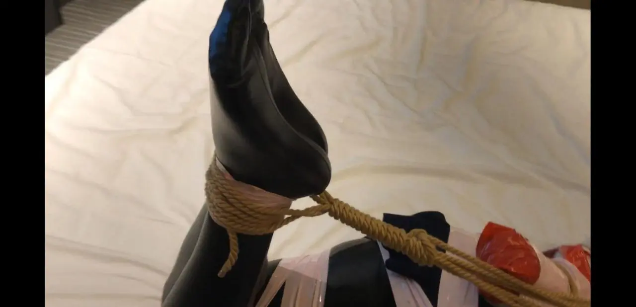 黑色连袜皮裤胶带缠绕挣扎加挠脚心