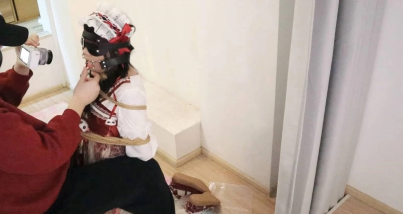 【荷约少女】先迷晕再绑 2 可爱LO少女 滚滚闹花灯熊猫中华风lolita裙子的调教物语,少女LO娘下跪臣服带上口环玩弄舌头和敏感身体,摸下面 惊恐地尖叫和痒刑 痛苦无论如何都挣脱不开的噩梦