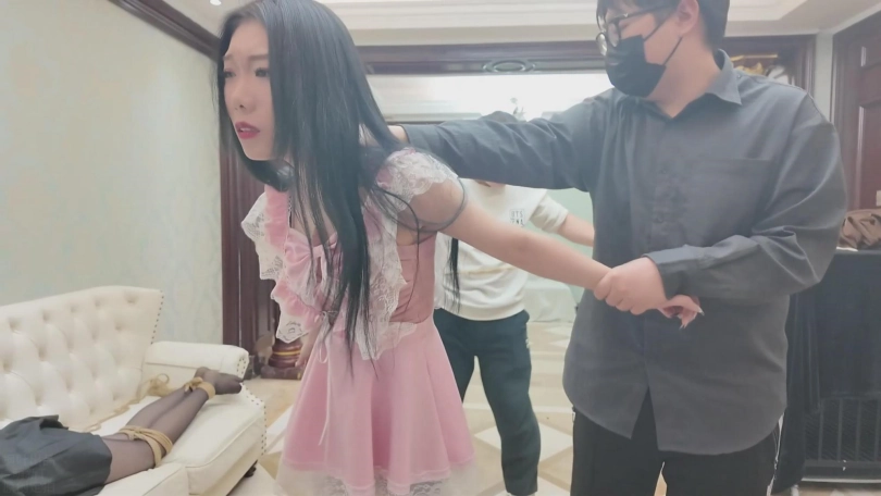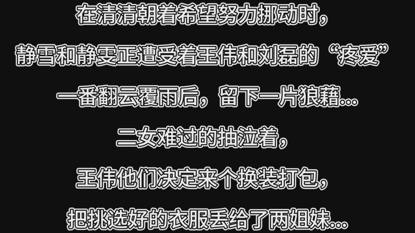 静雪和静雯正遭受着王伟和刘磊的“疼爱”