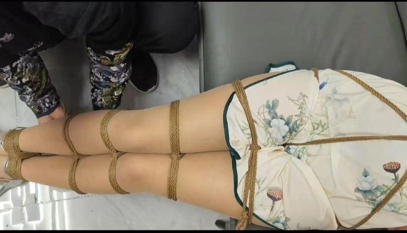 小夏一身旗袍被紧紧捆绑在椅子是,逃跑未成被二次捆绑到床上堵嘴挣扎....
