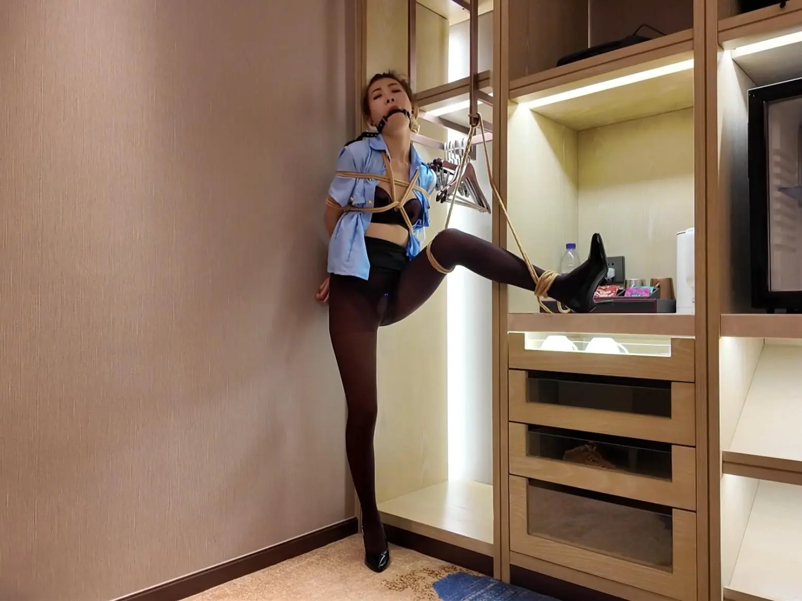 搜查官诺米回到房间休息时,误饮了被动过手脚的水而昏迷,醒来后发现自己被绑住。经过一系列的捆绑挣扎之后,美丽的搜查官诺米最后能脱困吗?