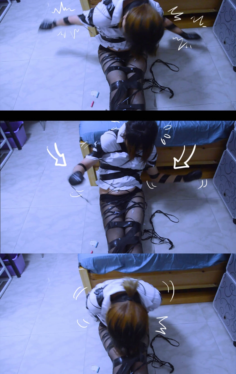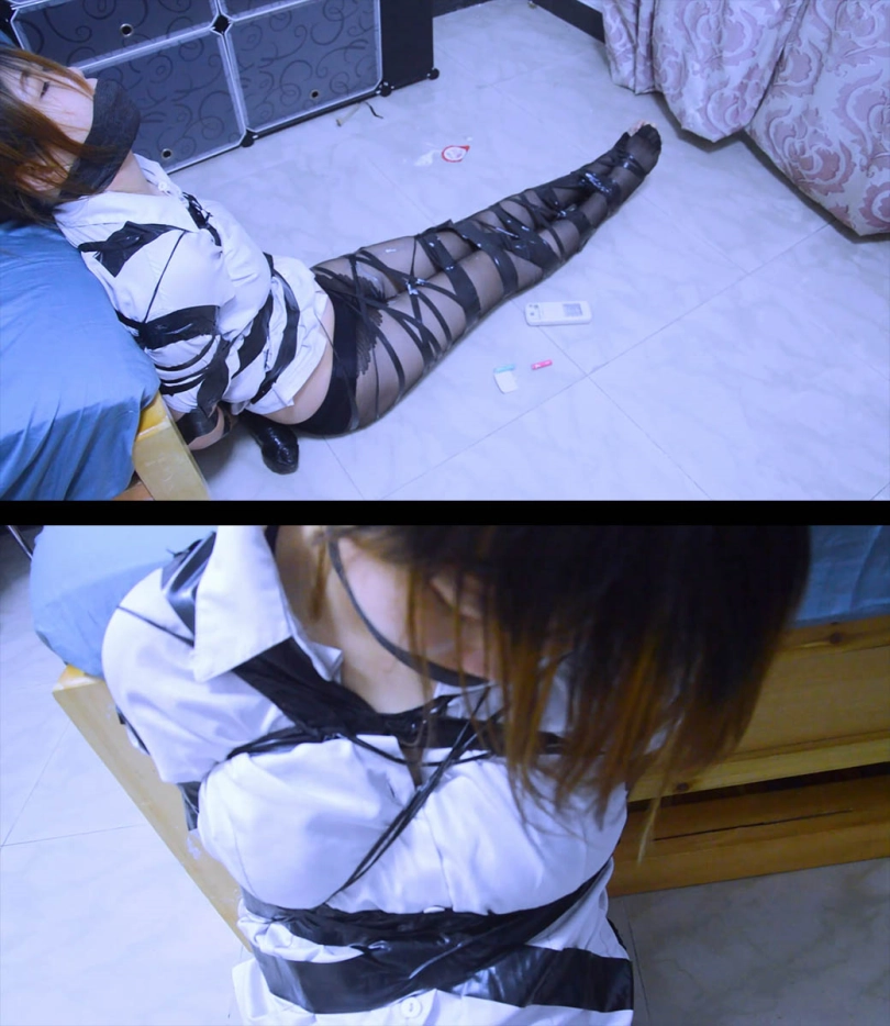 没一会胶带又恢复了捆绑,更可恶的是胶带拘束变的更多,更严密了,女警简直都要绝望了。