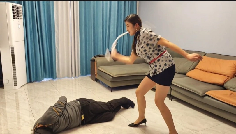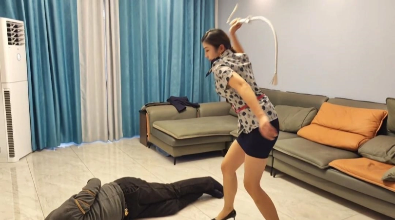 空姐佳佳下班回家发现不对劲,结果也没有搜出来人,回屋休息,没想到这个小偷竟然在佳佳走过的地方做不雅动作,正好被佳佳发现,于是就开启了收拾小偷的阶段,耳光,皮鞭,高跟鞋踩踏,样样齐全。最后一段,小偷激怒了空姐佳佳,被佳佳一顿皮鞭疯狂输出