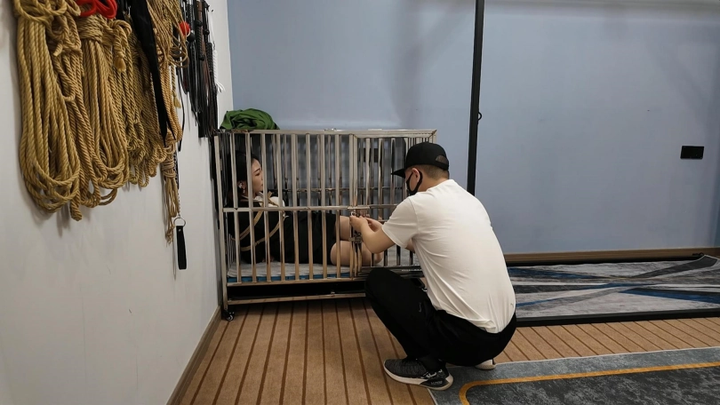 先把佳佳日式紧缚捆绑,放置到笼子里面、等候客户前来体验。体验流程是先后手吊,强制高C,休息一下后高手紧缚,鞭打,各种鞭打,任何分腿缚,继续强制高c,佳佳非常敏感,这个客户也非常会玩,这次体验后来听佳佳说让她[X_X]了三次