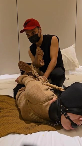 【小黑】马具口球+嘴里滴柠檬汁+头后仰连头驷马+打耳光,最后强行刺激她下面挣扎的很激烈。