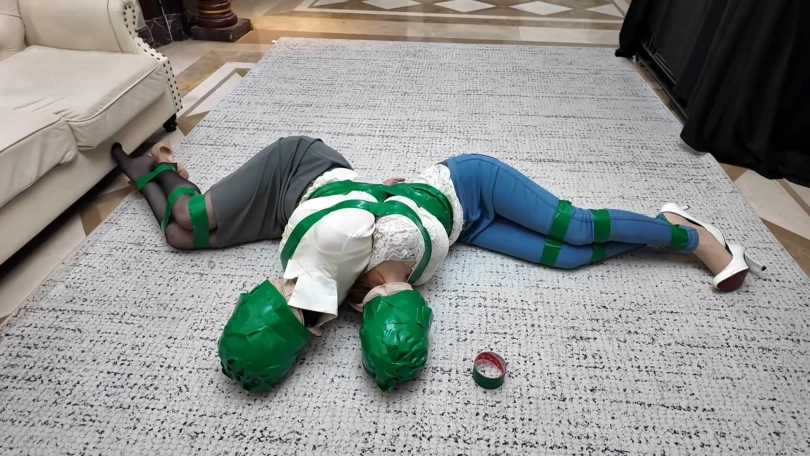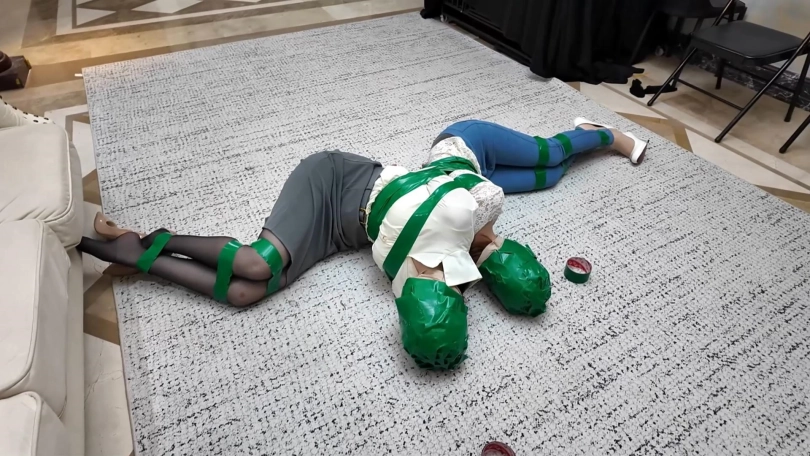 正义的诺澜并没有对这两个毒妇心慈手软,她将二人都用胶带捆绑缠头后,将二人连缚起来,让她们在绝望中接受自己的惩罚......