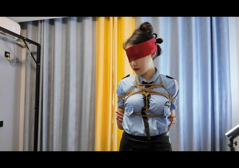 先把雅倩日式绑好,带上口球,蒙上眼睛,跪在房间等待客户到来调叫