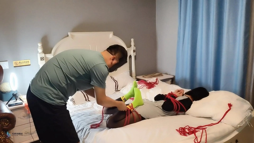 【JS】【激辣】红绳后手观音驷马捆绑棉袜丝袜套头胶带封嘴挠痒绑脚趾