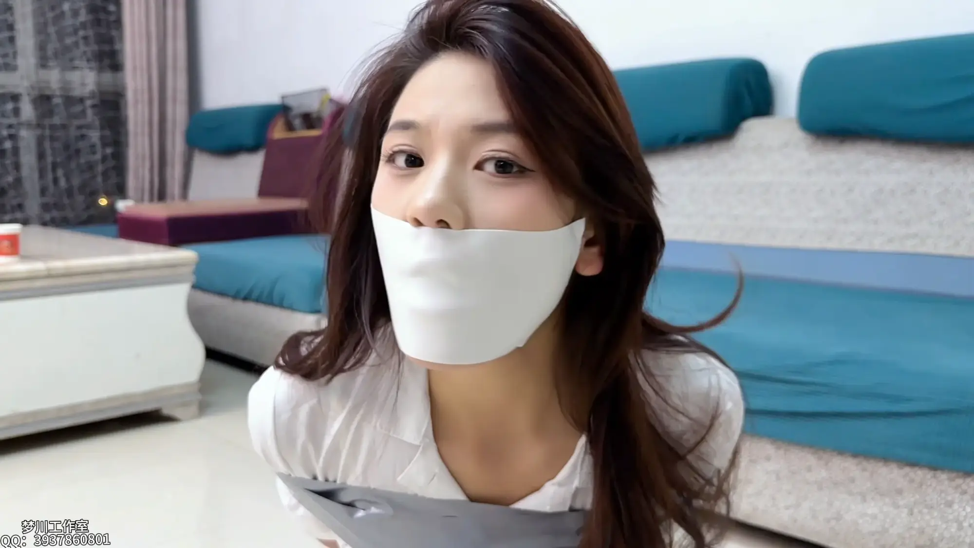 嘴巴在片刻自由后,就被丝袜和医用胶布剥夺了说话的权力!