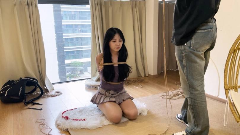 【绳师奥特曼】肉感新模直臂跪缚放置 带着大口球流口水
