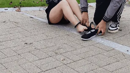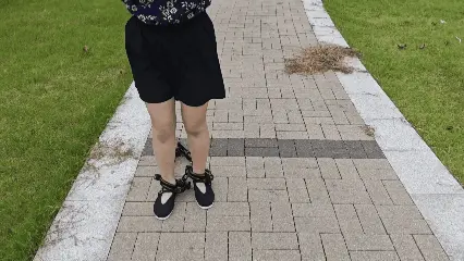 苏苏被带到偏僻的地方 ,给苏苏手脚都戴上死铐 ,然后要求苏苏穿苏苏坐在地上, 先光脚给苏苏穿上了35码的圆口一带木兰布鞋并且把布鞋的带子调到最紧 ,再检查一遍鞋带子要紧到直接扒扒不下这双木兰布鞋, 想要脱鞋子必须要解开扣子那个程度 。问苏苏脚的感觉如何 ,苏苏说很紧 ,感觉脚背被布鞋的襻带压的很不舒服 。我告诉苏苏这双布鞋就是35码 ,就是给你穿小鞋惩罚你用的, 必须要在脚上留下痕迹 ,然后苏苏由于手脚被极限束缚, 只能跳着前行 , 苏苏问怎样才能满意 , 我指着一个袋子说, 你用里面的道具给你的脚留下痕迹我就满意, 苏苏说我会乖乖听话的你让我看看是什么吧, 袋子里面是一副十多斤重的脚镣, 我说把脚伸出来,二话不说直接给苏苏用铆钉砸上了死镣, 你现在这样不就是被捕的女游击队长吗? 现在带你游街 。苏苏很快进入了角色 ,昂首挺胸 ,戴镣前行, 为了显示不屈服 ,苏苏还加快了脚步 ,但走五分钟以后, 迎来的却是五花大绑和加一副黑色脚镣 ,最后苏苏走不动了 ,被用死铐把脚锁上, 并驷马玩弄布鞋脚。