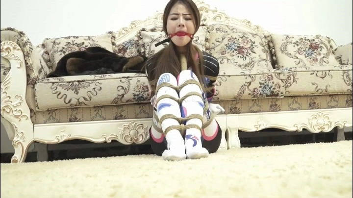 突然,门铃响了。黄洁问道,是谁呀。男人说到,是你爸爸的朋友,你爸爸托我给你带点东西。黄洁信以为真,打开了们。男人进门后,用手捂住黄洁的嘴,顺便,关上了门。黄洁开始反抗,男人把黄洁按倒在地。然后开始,捆绑黄洁,黄洁适当挣扎。