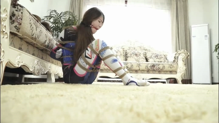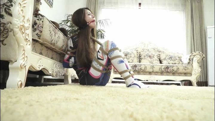 注意:腿部多捆绑几道。尽量紧一点。戴上口球。