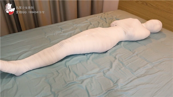 【九尾少女】小九尾绷带木乃伊多层全包初体验,白丝体操服,封闭双眼与听觉,多层绷带包头呼吸抑制,全包木乃伊封闭禁锢!