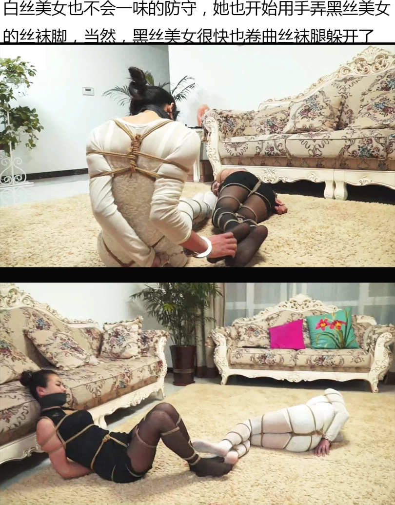 【逍遥】《黑白双娇》黑丝白丝美女 双娇比赛捆绑互相挠痒 玩弄丝袜脚 剧情新颖有趣