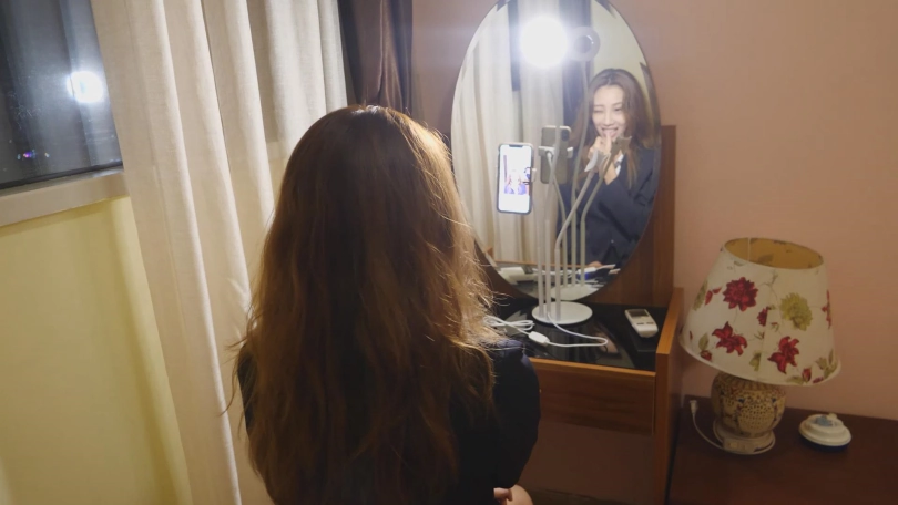 女主旁白:“我叫林飞菲,是一名主播,对,就是那种对着镜头和弹幕聊天的主播。每天唱歌跳舞打游戏,还能拿工资,倒也是自在。但现在毕竟不管是看脸的时代了,你还得每天给粉丝一些福利才行。当然了,我也只是顺应一下潮流,过个一两天就穿一些黑丝高跟长靴的出镜。这些倒也不是什么伤风败俗的服装,虽然平时很少穿,但为了粉丝福利,也只能这样委屈自己了。