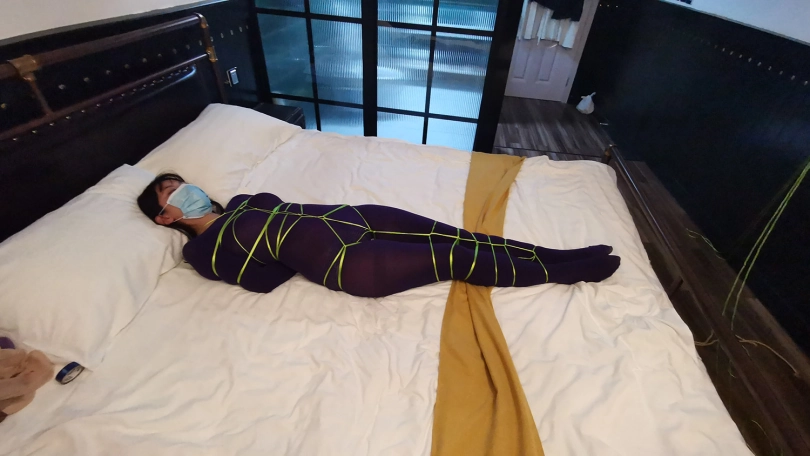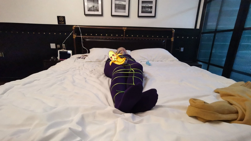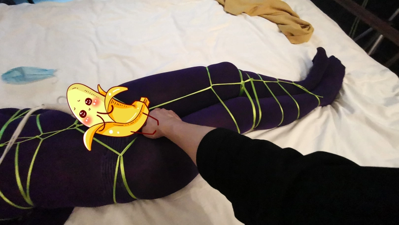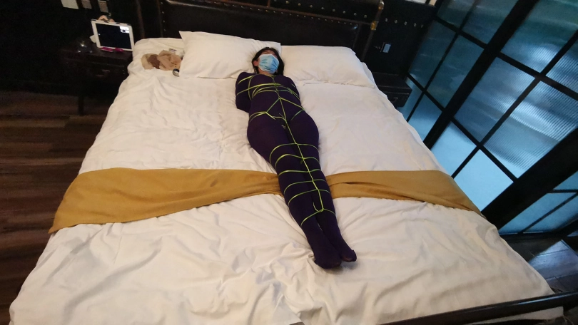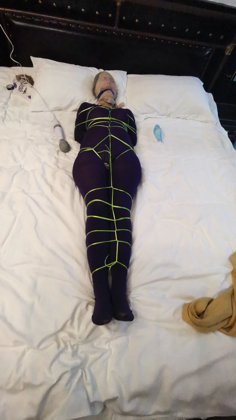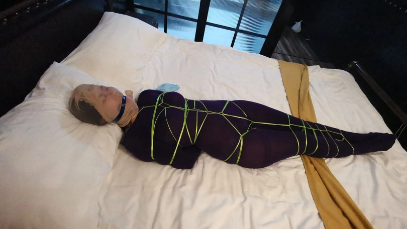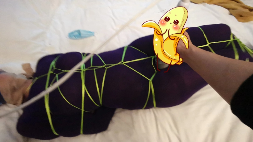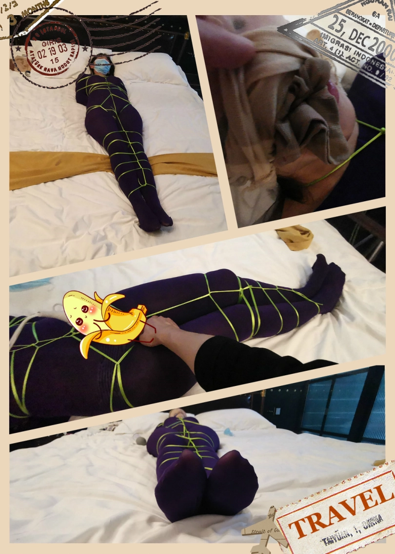 【JS】琳洛 细丝绳紫色连体衣捆绑 斯袜塞嘴套头 震动GC